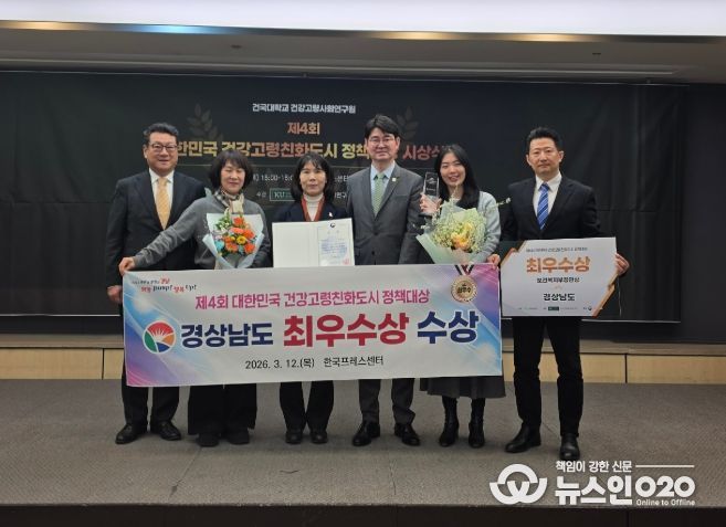 (뉴스인020 = 김성길 기자) 경상남도는 건국대학교 건강고령사회연구원이 주최하고 보건복지부가 후원하는 ‘제4회 대한민국 건강고령친화도시 정책대상’에서 유일하게 광역자치단체 최우수상을 수상했다고 밝혔다.