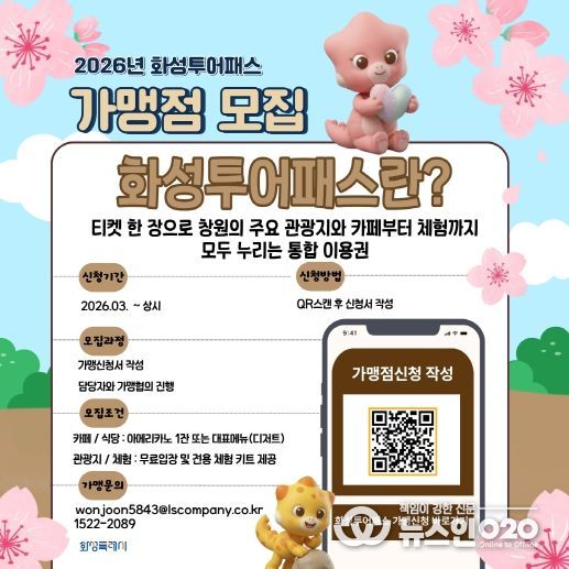 (뉴스인020 = 김성길 기자) 화성특례시가 관내 주요 관광지를 자유롭게 이용할 수 있는 통합 자유이용권 ‘화성 투어패스’의 신규 가맹점을 상시 모집한다고 12일 밝혔다.