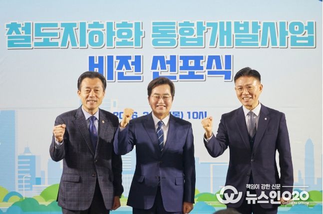 (뉴스인020 = 김성길 기자) 경기도의회 건설교통위원회 김성수 의원(더불어민주당, 안양1)은 12일 안양역에서 열린 ‘철도지하화 통합개발사업 비전선포식’에 참석하여 경부선 안양 구간의 조속한 철도지하화사업 대상지 선정을 촉구하고 강력한 추진 의지를 피력했다.