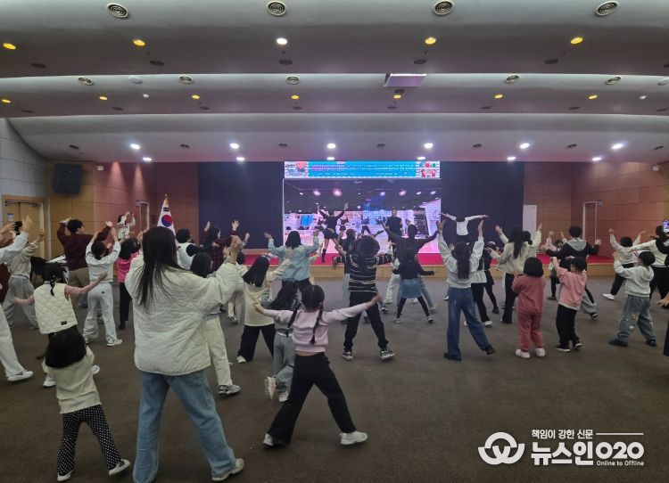 이어 진행된 104퍼포먼스단 첫 연습에는 어린이와 보호자 104명이 참여해 호흡을 맞췄다. 참가자들은 동요 ‘내가 바라는 세상’과 H.O.T.의 ‘빛(Hope)’ 등 전 세대가 공감할 수 있는 곡에 맞춰 플래시몹 안무를 익혔으며, 이는 기념식 오프닝 무대에 오를 예정이다.