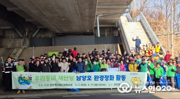 (뉴스인020 = 김성길 기자) 화성특례시 만세구 장안면은 3월 17일 남양호 일원에서 장안면 사회단체협의회 주최로 ‘2026년 남양호 환경정화 활동’을 실시했다.