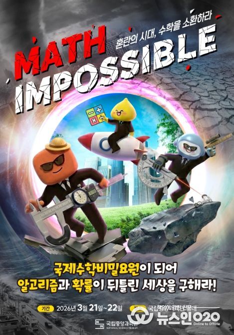 (뉴스인020 = 김나현 기자) 과학기술정보통신부 국립중앙과학관은 3월 21일부터 22일까지 양일간, 관람객이 주인공이 되어 수학적 사고로 위기를 극복하는 임무형(미션형) 수학 행사 ‘Math Impossible: 혼란의 시대, 수학을 소환하라!’를 개최한다.