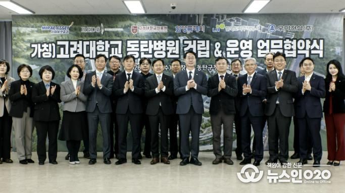 시는 18일 동탄구청 대회의실에서 한국토지주택공사(LH), 고려대학교 의료원, 컨소시엄 대표사(리즈인터내셔날, 우미건설, 미래에셋증권)와 함께 ‘(가칭)고려대학교 동탄병원 건립 지원 및 성공적 사업 추진을 위한 업무 협약’을 체결했다.