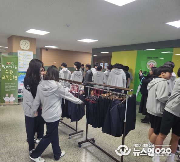(뉴스인020 = 김성길 기자) 경기도수원교육지원청은 최근 교복 가격 상승과 생활복․체육복 등 추가 구매로 인한 학부모 부담을 줄이고, 선후배 간 교복 나눔 문화를 확산하기 위해 ‘학교로 찾아가는 교복은행’행사를 운영한다고 밝혔다.