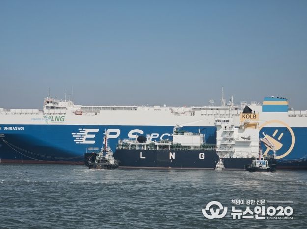 (뉴스인020 = 김성길 기자) 경기평택항만공사는 18일 평택국제자동차부두에서 개항 이래 최초로 대형 자동차운반선에 1,290톤(Metric Ton) 규모의 친환경 액화천연가스(LNG)를 성공적으로 급유했다고 밝혔다. 이번 첫 시범 운영 성공으로 평택항은 본격적인 상업용 친환경 선박 연료 공급(벙커링) 기반을 마련하며 국제 항만 경쟁력을 한층 끌어올렸다.