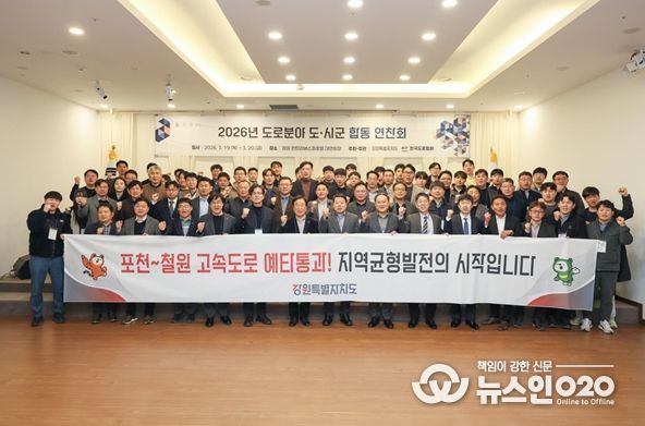 (뉴스인020 = 김성길 기자) 강원특별자치도는 3월 19일부터 20일까지 이틀간 철원군 일원에서 도내 도로 분야 담당 공무원 150여 명을 대상으로 '2026년 도로분야 도·시군 합동 연찬회'를 개최했다.