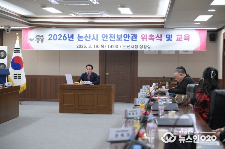 (뉴스인020 = 김성길 기자) 논산시는 지난 19일 시청 상황실에서 지역사회 안전문화 확산을 위한 ‘2026년 안전보안관 위촉장 수여식 및 직무교육’을 개최했다.