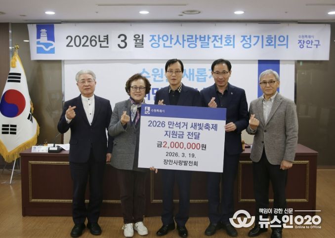 (뉴스인020 = 김성길 기자) 수원시 장안구 대표 봉사단체 장안사랑발전회가 지난 19일, '2026 만석거 새빛축제'의 성공적인 개최를 응원하며 지원금 200만원을 전달했다.