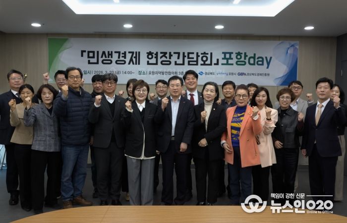 (뉴스인020 = 김성길 기자) 경상북도는 3월 20일 14시 포항지역발전협의회 대회의실에서 지역 현장의 목소리를 청취하고 상생 발전 방안을 모색하기 위해‘민생경제 현장 간담회(포항의 날)’를 개최했다.