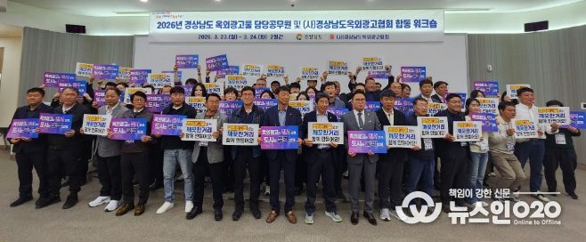 (뉴스인020 = 김성길 기자) 경상남도는 옥외광고 행정 역량 강화를 위해 3월 23일부터 24일까지 사천 KB인재니움에서 ‘2026년 옥외광고물 담당 공무원 및 유관기관 합동 워크숍’을 개최했다고 밝혔다.