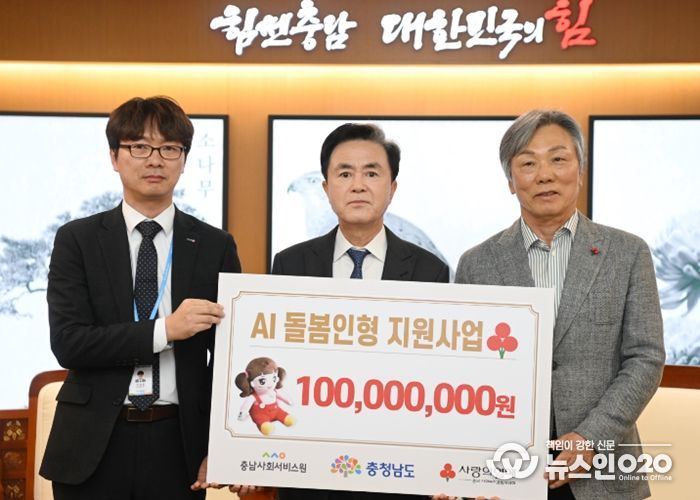 (뉴스인020 = 김성길 기자) 충남도는 23일 충남사회복지공동모금회로부터 고독사 예방을 위한 인공지능(AI) 돌봄인형 지원 사업비 1억원을 기탁받았다.