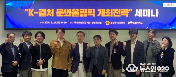 (뉴스인020 = 김성길 기자) 전북특별자치도와 윤준병 국회의원실은 24일 국회의원회관에서 ‘K-컬처 문화올림픽 개최 전략’ 세미나를 개최했다.