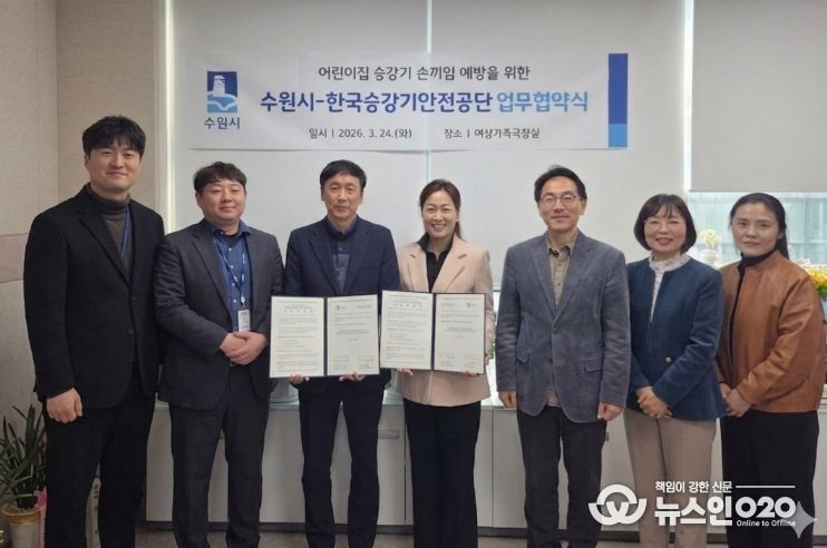 (뉴스인020 = 김성길 기자) 수원특례시와 한국승강기안전공단 수원지사는 24일 수원시청에서 ‘어린이집 승강기 손 끼임 사고 예방을 위한 업무협약’을 체결하고, 어린이집 내 영유아의 안전한 보육 환경을 조성하기 위해 협력하기로 했다.
