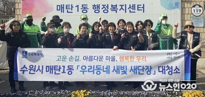 (뉴스인020 = 김성길 기자) 영통구 매탄1동 행정복지센터는 지난 24일, '우리동네 새빛 새단장' 사업의 일환으로, 새봄맞이 대청소 및 초화 식재 활동을 실시했다.