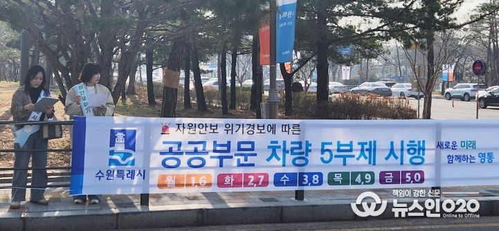 (뉴스인020 = 김성길 기자) 수원시 영통구는 정부의 에너지 절약 대책에 발맞춰 3월 25일부터 공공기관 차량 5부제 시행에 참여한다고 밝혔다.