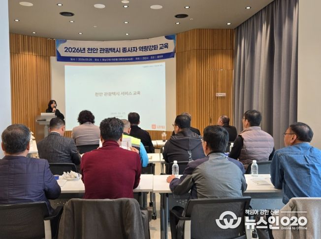 (뉴스인020 = 김성길 기자) 천안시는 ‘관광택시’ 시범운영을 앞두고 25일 동남구청 타운홀 대회의실에서 참여 운행기사 12명을 대상으로 사전 교육을 실시했다.