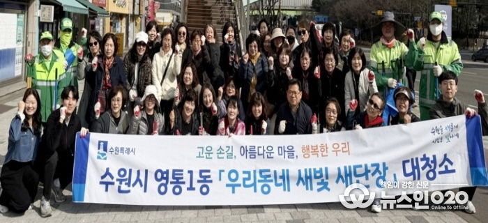 (뉴스인020 = 김성길 기자) 영통구 영통1동 행정복지센터는 지난 3월 25일 새봄을 맞아 쾌적한 도시환경 조성을 위한 ‘새봄맞이 일제 대청소’를 실시했다.