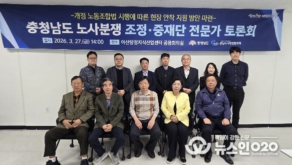 (뉴스인020 = 김성길 기자) 충남도는 27일 아산탕정유니콘지식산업센터 회의실에서 ‘충청남도 노사분쟁 조정·중재단 전문가 초청 토론회’를 개최했다.