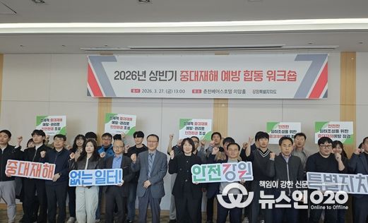 (뉴스인020 = 김성길 기자) 강원특별자치도는 3월 27일 오후 1시 춘천 베어스호텔에서 도·시군, 고용노동부 등 관계자 50여 명이 참석한 가운데 ‘2026년 상반기 중대재해 예방 합동 워크숍’을 개최했다. 이번 워크숍은 중대재해처벌법 엄정 대응 기조에 맞춰 실질적인 사고 예방과 현장 실무자의 대응 역량 강화를 위해 마련됐다.