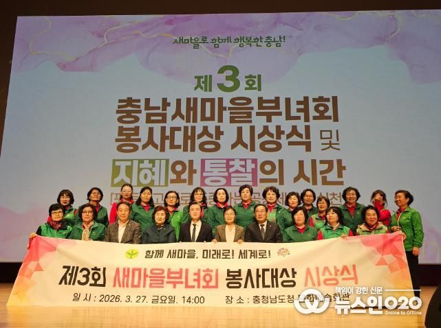 (뉴스인020 = 김성길 기자) 청양군 새마을부녀회가 충남도청 문예회관에서 열린 ‘제3회 새마을봉사대상 시상식 및 여성 리더 교육’에 참석해 지역 사회를 밝히는 봉사 실천 의지를 새롭게 다졌다.