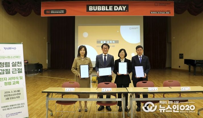 (뉴스인020 = 김성길 기자) 안양시청소년재단은 지난 30일 만안청소년수련관 도담소극장에서 전 직원을 대상으로 내부 커뮤니케이션 행사 ‘버블데이(BUBBLE DAY)’를 운영하며 조직 소통과 청렴문화 확산에 나섰다.