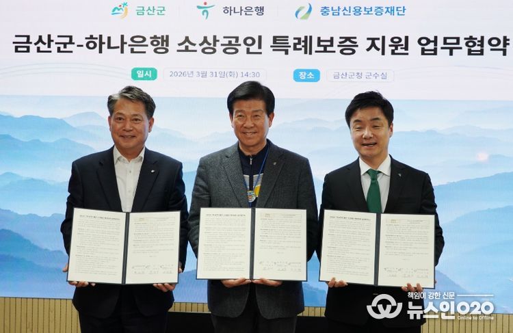 (뉴스인020 = 김성길 기자) 충남신용보증재단이 금산군, 하나은행과 손잡고 금산군 소상공인 특례보증의 추가 지원에 나선다.