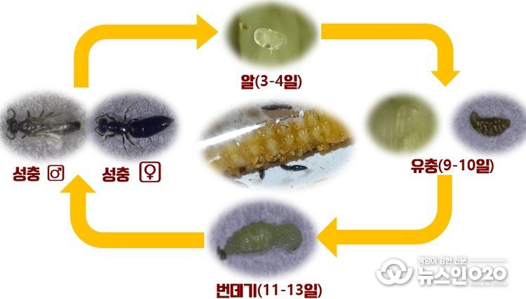 이에 산업곤충연구소는 하늘소 유충에 외부 기생해 기주를 마비시키고 무력화하는 천적 ‘개미침벌’에 주목했다.