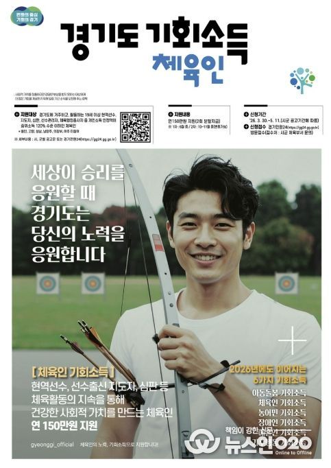 시 관계자는 “체육인 기회소득은 체육인의 직업적 권리를 두텁게 보호하기 위해 지속적인 활동을 지원하는 사업”이라며 “스포츠가 가진 공익적 가치가 우리 사회 전반에 선순환 되길 기대한다”고 밝혔다.