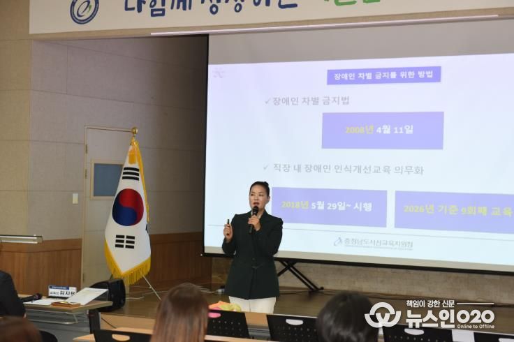 (뉴스인020 = 김성길 기자) 충청남도서산교육지원청은 제46회 ‘장애인의 날’을 맞이하여 4월 1일 전 직원을 대상으로 장애이해교육을 실시했다.