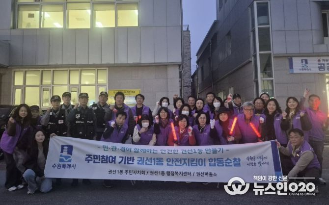 (뉴스인020 = 김성길 기자) 수원시 권선구 권선1동 주민자치회는 지난 31일 저녁, 지역 주민들과 함께 권선1동 일대에서 민·관·경 합동순찰을 실시했다.
