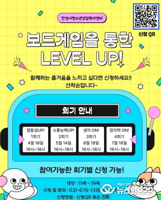 (뉴스인020 = 김성길 기자) 안성시 청소년상담복지센터는 오는 4월부터 11월까지 관내 청소년(11세~19세)을 대상으로 ‘문제해결 능력 향상 프로그램’을 운영한다고 밝혔다.