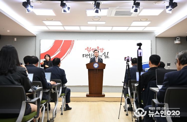 김태흠 충청남도지사는 2일 도청 프레스센터에서 기자회견을 열고, 원자재 가격 급등, 물류비 증가 등으로 지역 기업과 자영업자의 경영 부담이 가중됨에 따라 정부 추경예산 확정 전에 도 차원의 지원 대책을 추진하여 중소기업 및 소상공인의 회생을 위한 골든타임을 놓치지 않도록 하겠다고 밝혔다.
