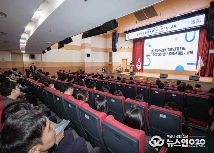 수원시가 2일 시청 대강당에서 ‘제9회 전국동시지방선거 대비 공직자가 알아야 할 공직선거법 교육’을 열었다. 송하경 팔달구 선거관리위원회 지도계장이 공직자들이 자주 묻는 내용을 중심으로 공직선거법을 설명했다.