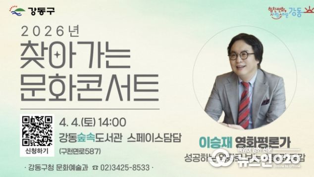 (뉴스인020 = 김성길 기자) 서울 강동구는 4월 4일 오후 2시, 강동숲속도서관 스페이스담담에서 '2026년 찾아가는 문화콘서트' 2회차를 개최한다고 밝혔다.