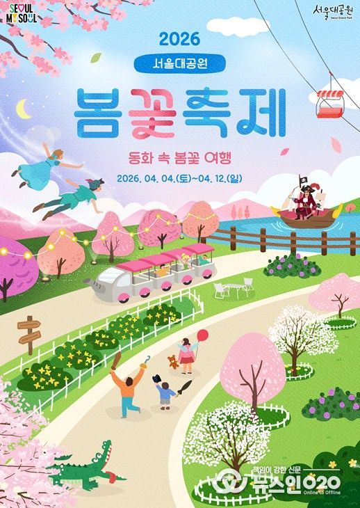 (뉴스인020 = 김성길 기자) 서울대공원은 2026년 4월 4일부터 4월 12일까지 봄의 정취를 가득 담은 ‘봄꽃축제’를 개최한다고 밝혔다. 올해는 개화시기에 맞춰 시민들이 보다 여유롭게 벚꽃의 정취를 느낄 수 있도록 축제 기간을 9일로 연장해 운영한다.
