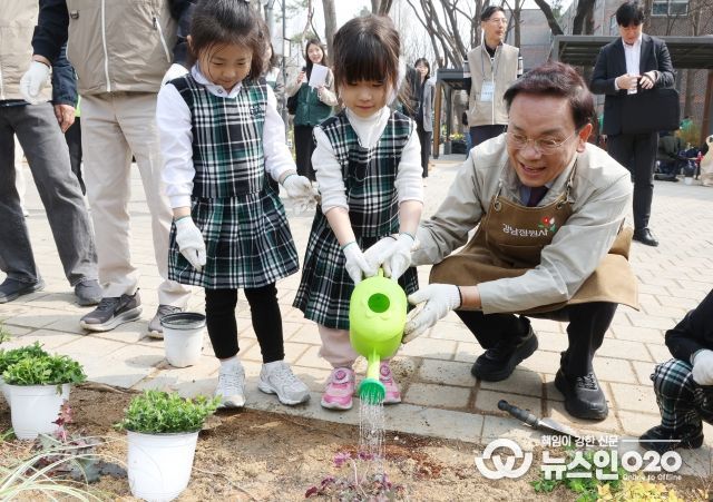 (뉴스인020 = 김성길 기자) 꿈이 모이는 도시, 미래를 그리는 강남구가 4월 3일 양재천 개포동근린공원에서 제81회 식목일을 맞아 ‘우리 동네 초록기부 챌린지 – 참여의 정원 숲 조성 행사’를 열고, 구민과 함께 정원 숲을 조성했다.