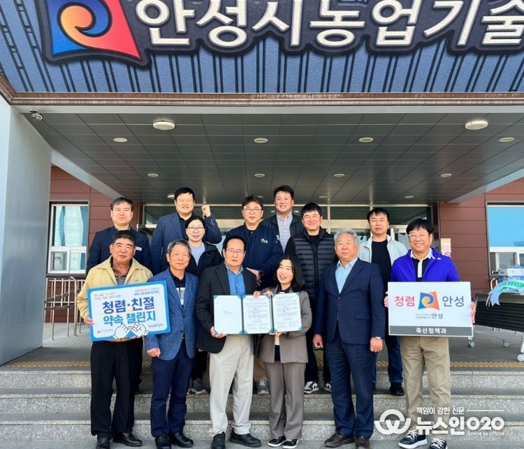 (뉴스인020 = 김성길 기자) 안성시 농업기술센터 축산정책과가 지역 축산단체들과 손잡고 투명하고 공정한 행정 실현을 위한 '청렴 행보'에 본격적으로 나섰다. 시는 지난 4월 2일, 안성시 축산단체협의회와 함께 청렴 협약식을 개최하고 신뢰받는 축산행정 구현을 위한 협력 기반을 강화했다고 밝혔다.