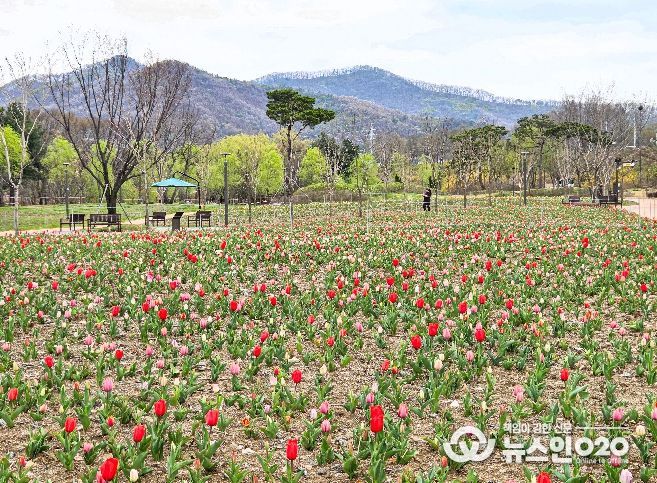 (뉴스인020 = 김성길 기자) 천안의 대표 명소인 삼거리공원 너른뜰 튤립정원에 10만 송이의 튤립이 꽃망울을 터트리며 시민들에게 봄의 설렘을 전하고 있다.