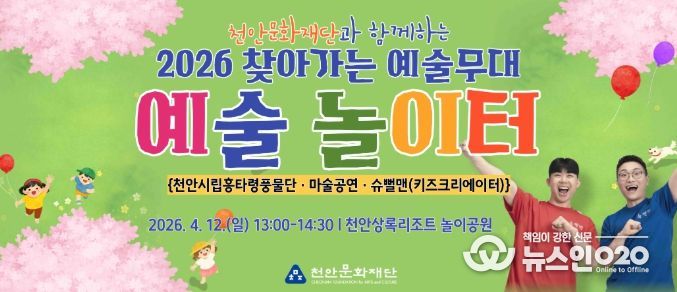 (뉴스인020 = 김성길 기자) 천안문화재단은 오는 12일 천안상록리조트 놀이공원 일원에서 ‘예술놀이터’를 운영한다고 7일 밝혔다.