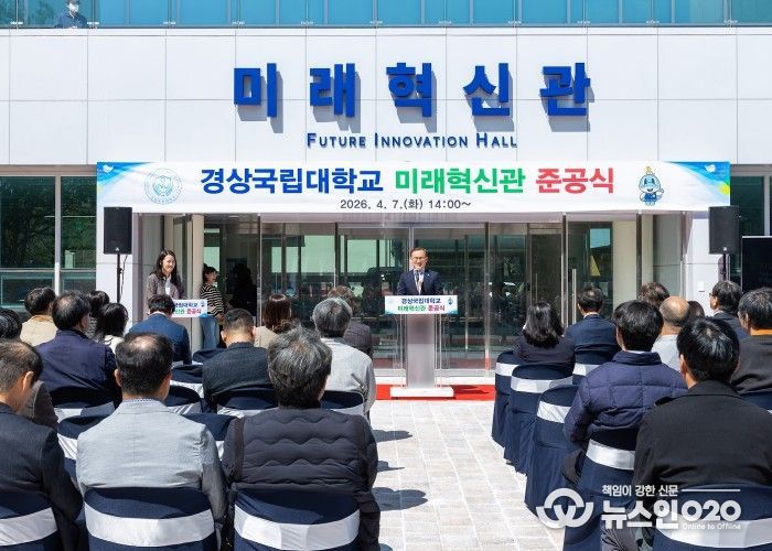 (뉴스인020 = 김성길 기자) 경상국립대학교는 4월 7일 오후 2시 가좌캠퍼스 미래혁신관 입구 광장에서 ‘미래혁신관 준공식’을 개최했다. 이번 준공식은 2021년 3월 경상대학교와 경남과학기술대학교의 통합 이후 추진된 캠퍼스 이전·재배치 지원사업의 일환으로, 미래혁신관 신축공사의 완료를 기념하기 위해 마련됐다.