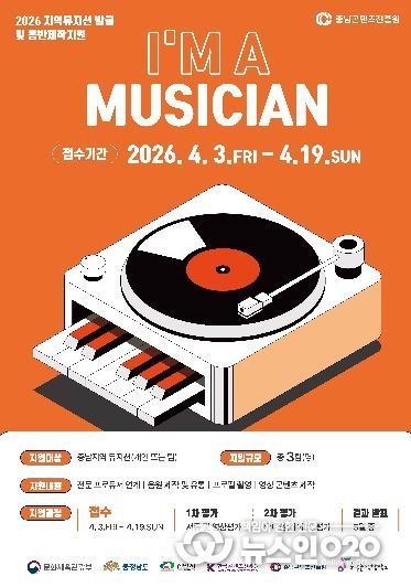 (뉴스인020 = 김성길 기자) 충남콘텐츠진흥원이 운영하는 충남음악창작소는 충남 지역 뮤지션들에게 음반 제작부터 발매·유통까지 종합적인 지원을 제공하는 ‘I AM A MUSICIAN’ 프로젝트를 2026년에도 추진한다.