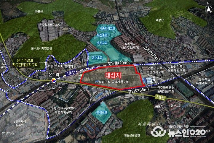대상지는 1호선과 7호선이 교차하는 온수역 인근에 위치하고 있으며, 상업·주거·문화시설이 결합된 대규모 복합거점으로 조성될 계획이다.이를 통해 역세권의 복합 중심 기능이 강화되고, 가로 활력이 확산될 것으로 예상된다.