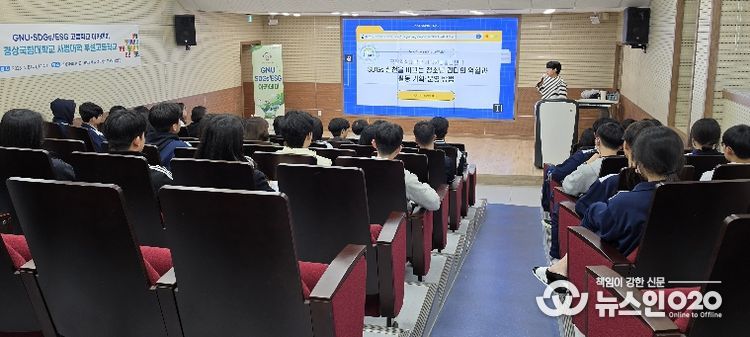 (뉴스인020 = 김성길 기자) 경상국립대학교 지속가능발전센터는 4월 8일 사범대학 부설고등학교 영상활용관에서 고등학생 47명을 대상으로 ‘SDGs 실천을 이끄는 청소년 리더의 역할과 활동 기획·운영 방법’이라는 주제로 교육을 진행했다.