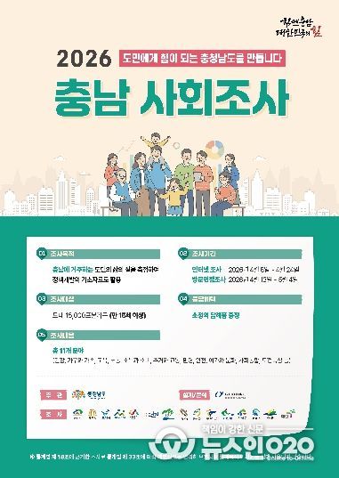 (뉴스인020 = 김성길 기자) 논산시는 오는 4월 13일부터 5월 4일까지 관내 1,020가구의 만 15세 이상 가구주 및 가구원을 대상으로 ‘2026 충남사회조사’를 실시한다.
