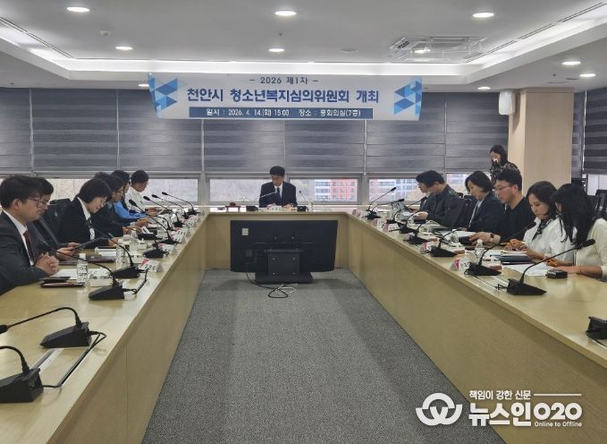 (뉴스인020 = 김성길 기자) 천안시는 위기청소년 발굴과 맞춤형 지원을 위해 14일 시청 중회의실에서 ‘2026년 제1차 청소년복지심의위원회’를 개최했다.