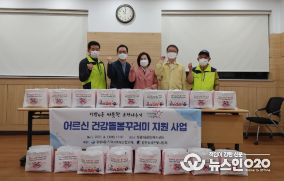 (뉴스인020 = 김민석 기자) 시흥시 정왕4동 지역사회보장협의체(민간위원장 신원철, 공공위원장 이정수)는 지난 4월 13일 ‘어르신 건강돌봄 꾸러미’를 함현상생은빛사랑채(센터장 김순애) 이용 대상자 44명에게 전달했다.