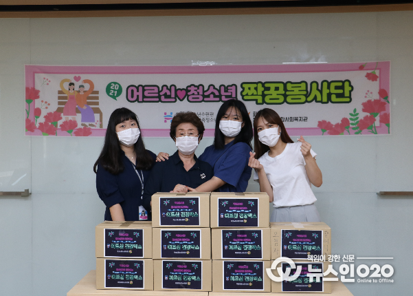 건강 박스를 전달받은 복지관 어르신은 ‘코로나19와 폭염으로 외부 활동을 못해 아쉬움이 컸는데, 이렇게 물품을 손수 준비해 주고 안부 전화도 자주 해줘서 마음이 든든하다. 소중한 손주가 생겨 고맙고, 짝궁봉사단이 더욱 건강하고 활기차게 활동하기를 희망한다.’고 전했다.