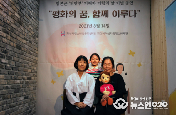 (뉴스인020 = 김성길 기자) 화성시청소년성문화센터(화성시여성가족청소년재단 운영)는 오는 8월 14일 일본군‘피해자’기림의 날을 맞이하여 시민참여 비대면 기념 공연을 진행한다. 8월 14일은 故 김학순‘위안부’피해자의 최초 증언이 있었던 날로 2018년 국가기념일로 지정되었으며, 2021년은 증언 30주년이 되는 해이다.