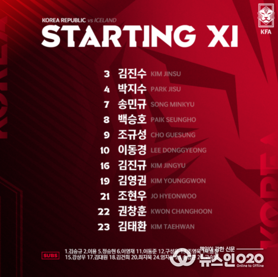 (뉴스인020 = 김민석 기자) 아이슬란드와의 친선경기에 나설 남자 국가대표팀의 명단이 발표됐다.