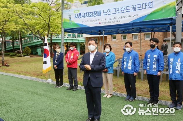 (뉴스인020 = 김민석 기자) 경기 시흥시의회가 29일 능곡동 그라운드 골프장에서 열린 ‘제8회 어르신 그라운드 골프대회’에 참석해 대회 참가 어르신들을 격려했다.